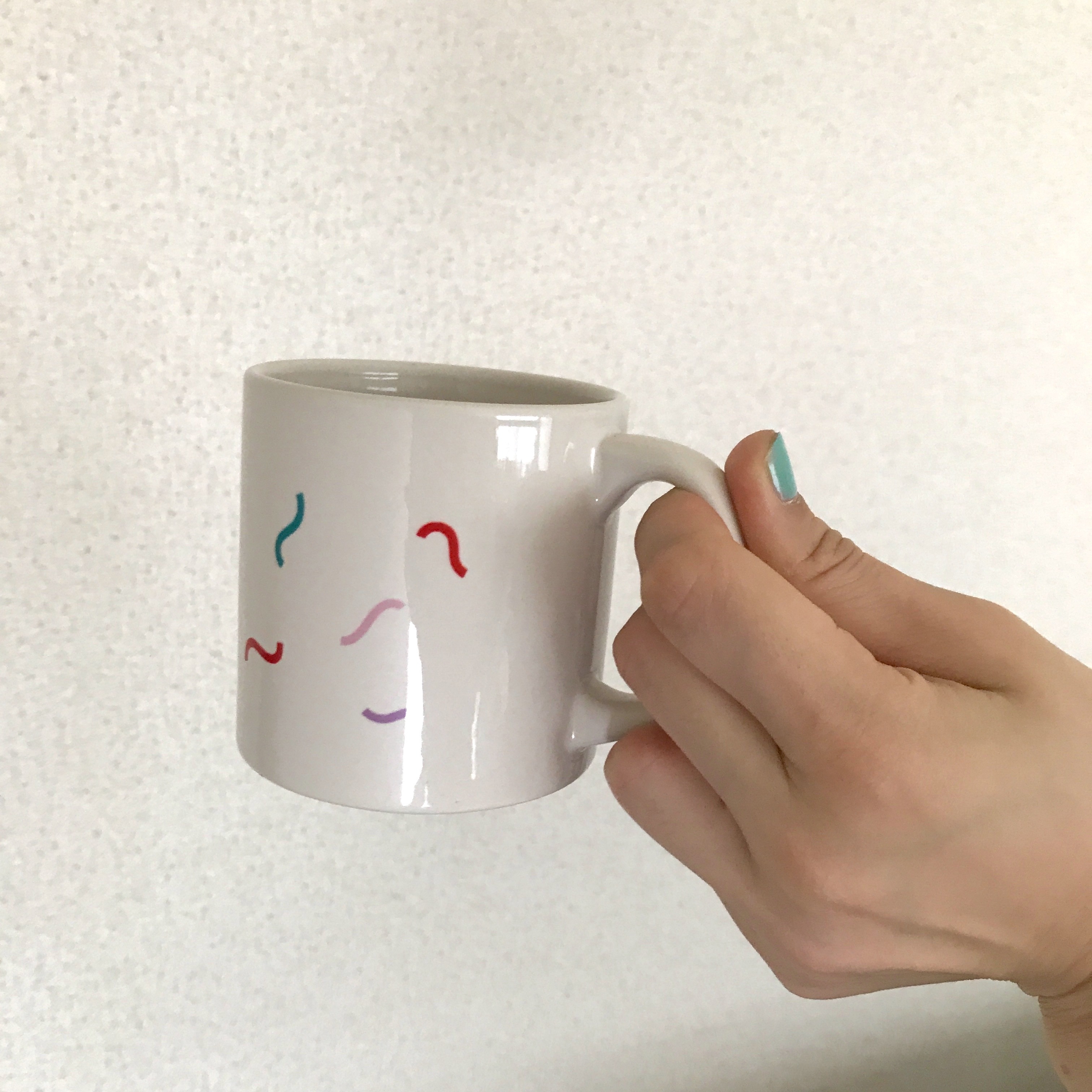 アイボリー色のころんとした小さめマグカップ。